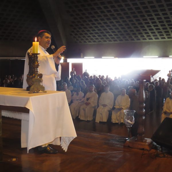 O vigário episcopal da Rensc, padre Antônio Moacir, presidiu a celebração penitencial, promovendo um momento de reconciliação: “É preciso que sejamos fiéis no compromisso de cristão, em nossa relação conosco mesmos, com Deus, com o outro, com a sociedade e com a nossa comunidade de fé”, orientou o padre, preparando os peregrinos para momento das confissões.