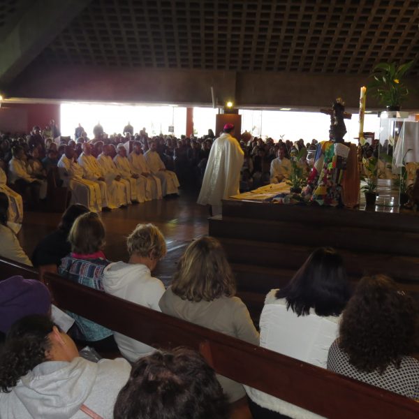 A Celebração Eucarística presida por dom Edson e concelebrada pelos padres da Rensc marcou o encerramento da programação da parte da manhã. Durante a homília, dom Edson destacou que a peregrinação é um momento especial de revitalizar a nossa vida como fiéis e de renovar as forças: “Hoje somos chamados a nos colocar no colo da nossa mãe e testemunhar cada vez mais a nossa fé”. O encerramento da peregrinação foi marcado por um momento especial, a oração do Terço Mariano conduzida pelo padre Antônio Moacir.